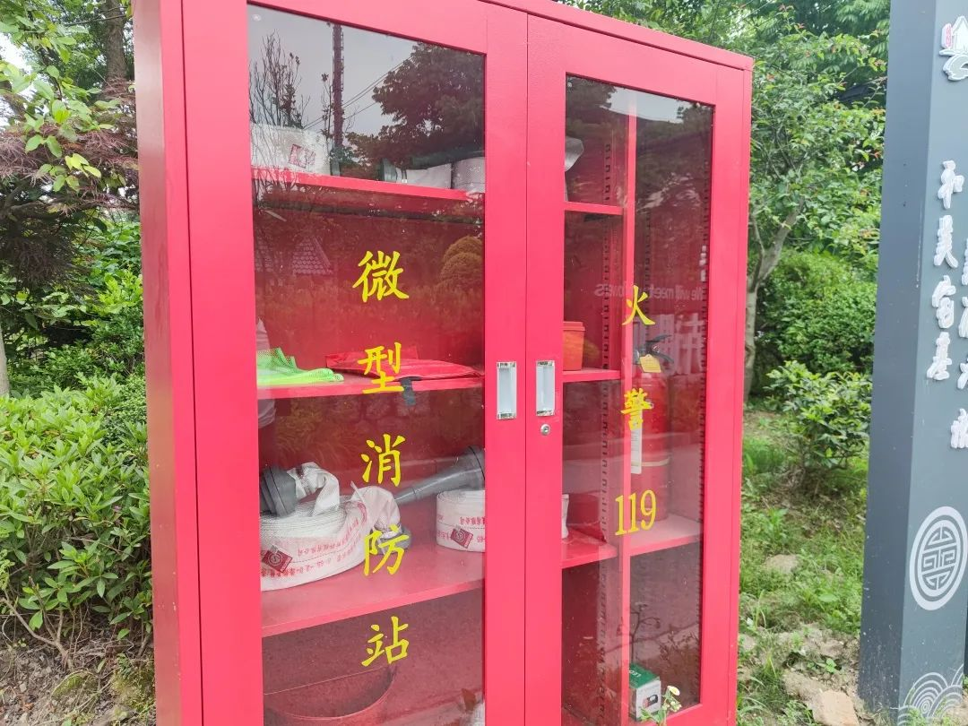 微型消防站虽占地不大,但是装备齐全,灭火器、消防水带、消防水枪、灭火毯、手套、3C面罩、腰带等消防应急设备整齐成列在柜子里。让村民们在第一时间取得消防器材,将火灾的损失降到最低,从而保护人民群众的生命和财产。