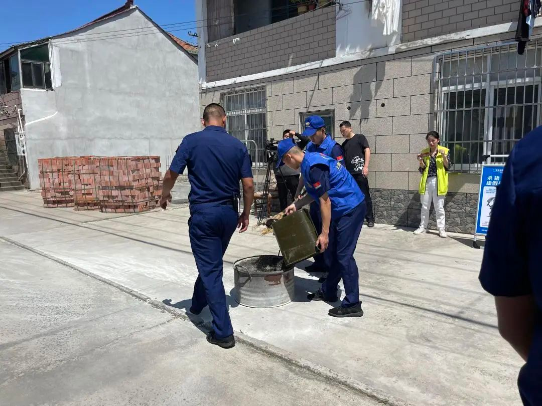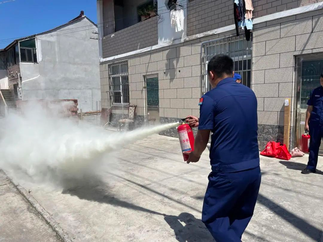 让村民们印象深刻的莫过于现场的消防演习了。消防员点燃了事先准备好的稻草,手把手教村民如何正确使用灭火器,以及正确灭火方式。实际动手操作一番,瞬间让村民有了具体的认识,不少村民都跃跃欲试。