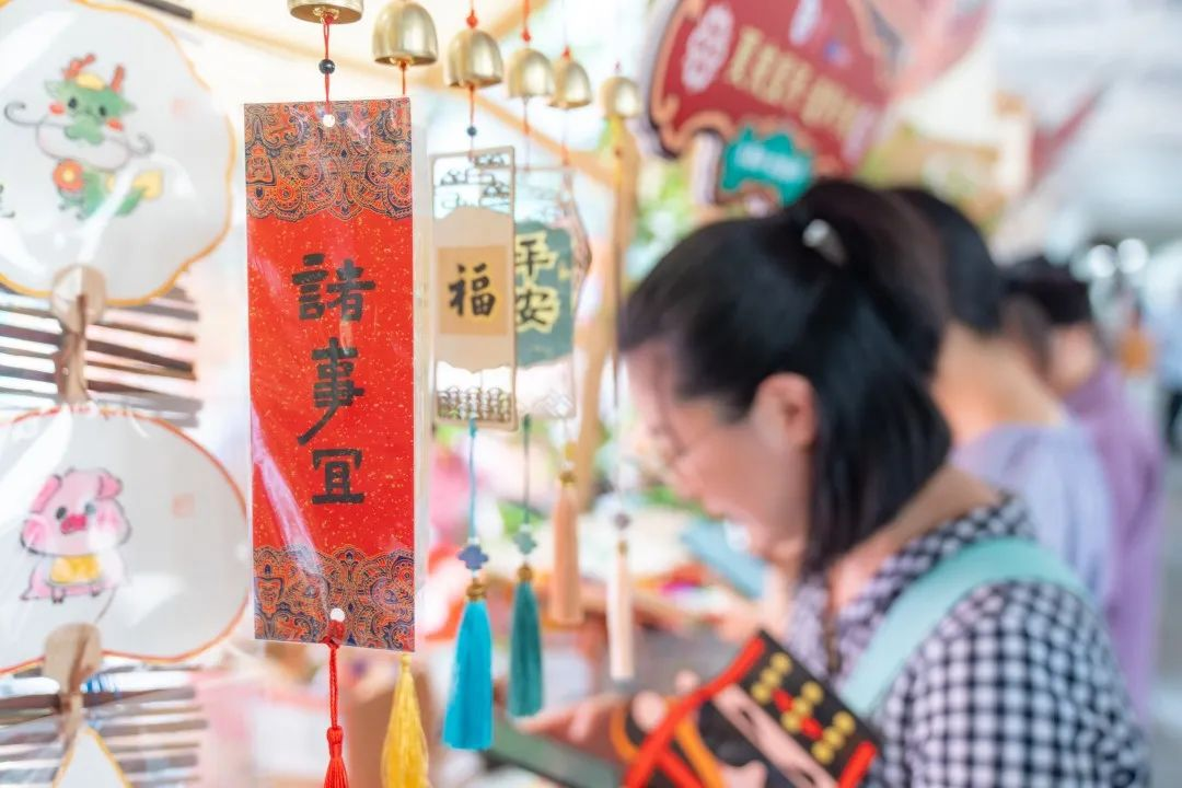 在各个摊位,更有手工国画、精致点心、特色文创等各色国风好物,吸引来往市民驻足观赏、购买。