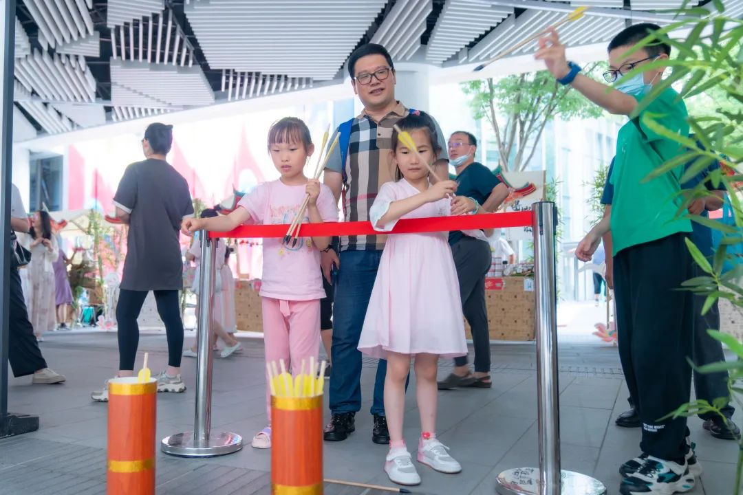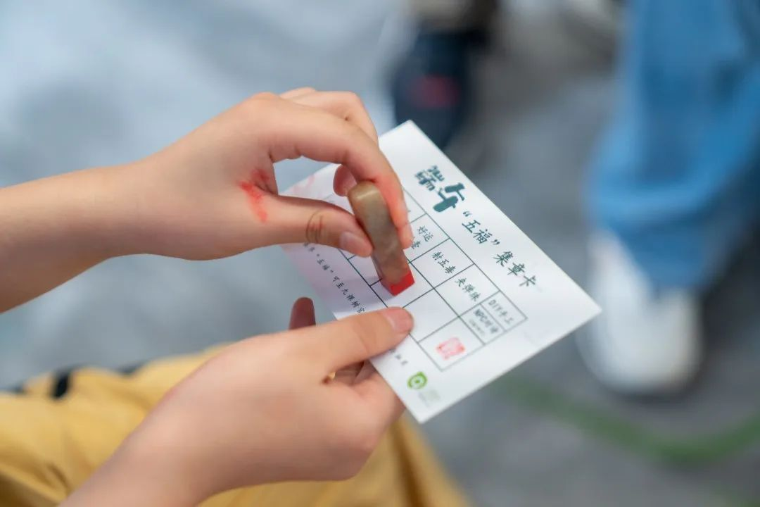 活动现场,不仅有夹弹珠、射五毒、对诗、DIY手工等国风满满和趣味十足的活动,入场的观众还可以免费领取“五福卡”,游玩即可集章,获取五枚特色印章,就可以参与免费抽奖,赢取奖品。