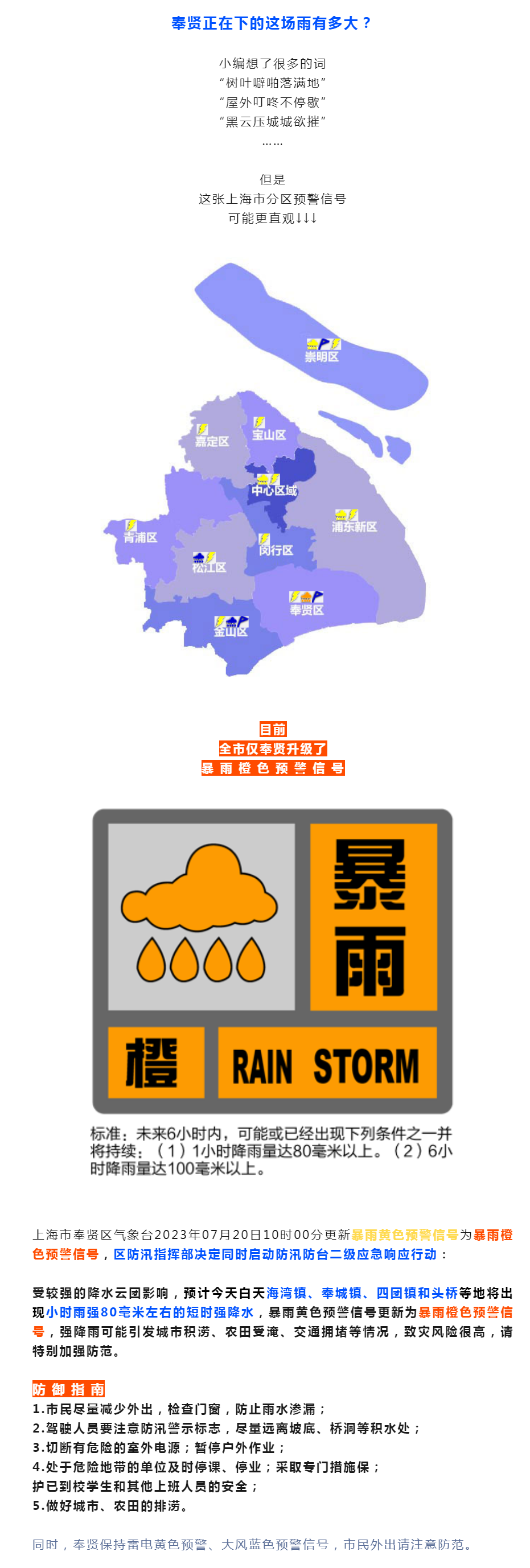 预警升级!奉贤发布暴雨橙色预警!降水主要在东部地区