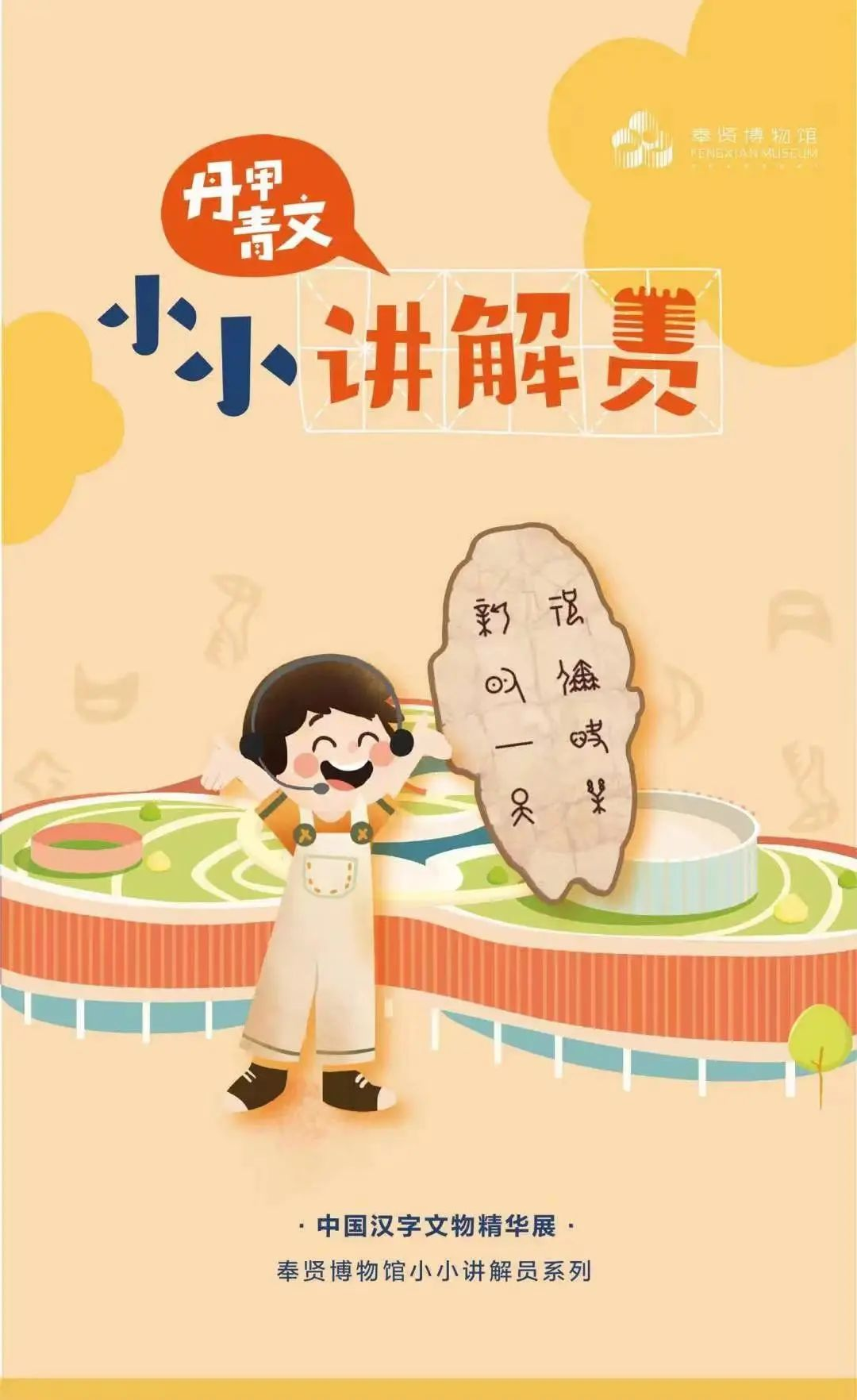“有部分传说认为,汉字是由八卦演绎而来……”在奉贤博物馆“丹甲青文——中国汉字文物精华展”现场,奉贤区明德外国语小学五年级毕业生董沐辰,正穿着蓝色小马甲,以“小小讲解员”的身份,围绕189件(组)汉字文物展品,向20多位来自奉贤区恒贤小学的“弟弟妹妹团”,细心讲解着每一件文物所处的身世、蕴藏的故事、见证的历史。