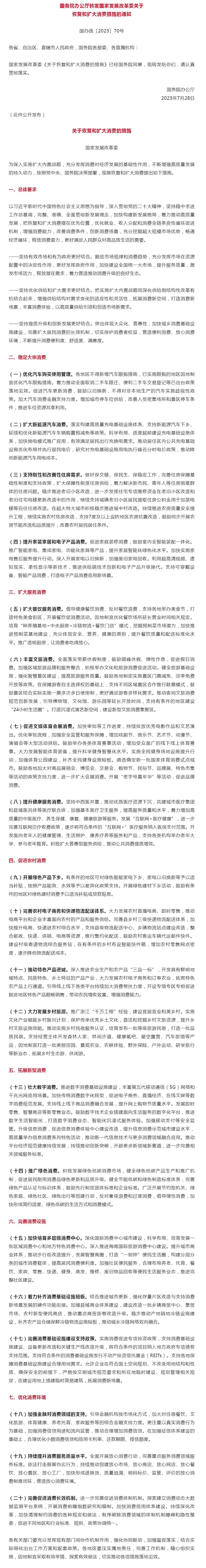 重磅!恢复和扩大消费20条措施发布