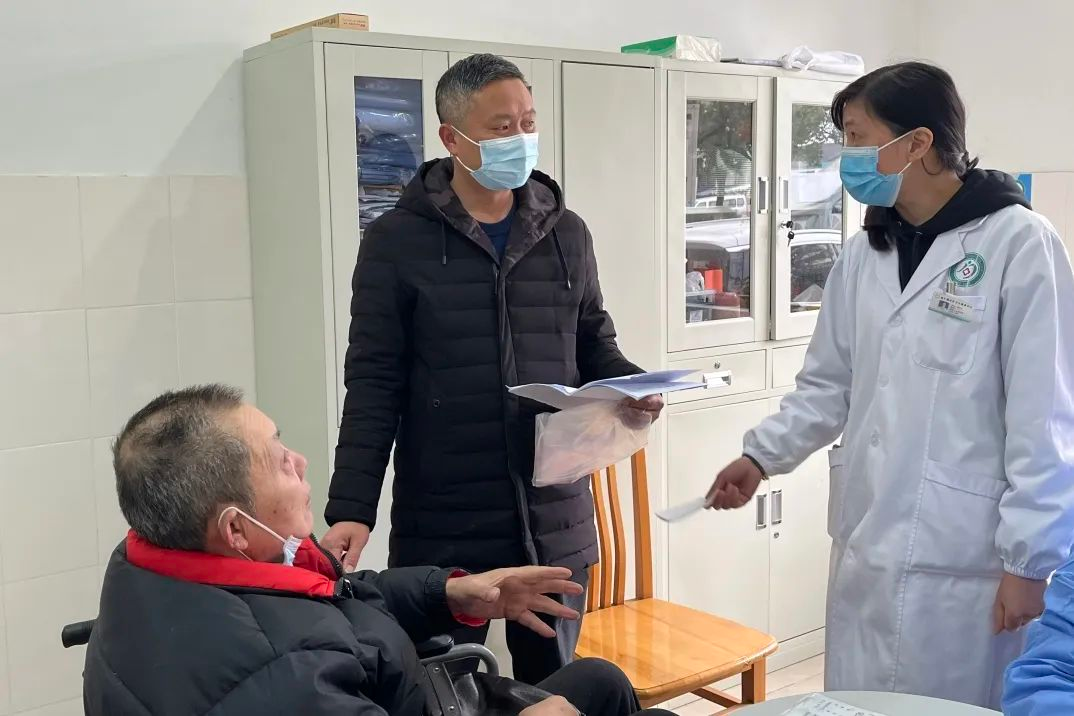 到社区卫生中心后,社区居委干部陪同张老伯办理了挂号、缴费等手续,并陪同老人在就诊室里向医生讲述最近身体状况。陪伴张老伯完成了所有检查,随后又配齐了日常所需的各类药品。最后,也为张老伯咨询了其他健康方面的信息,以备下次需要时来问诊。