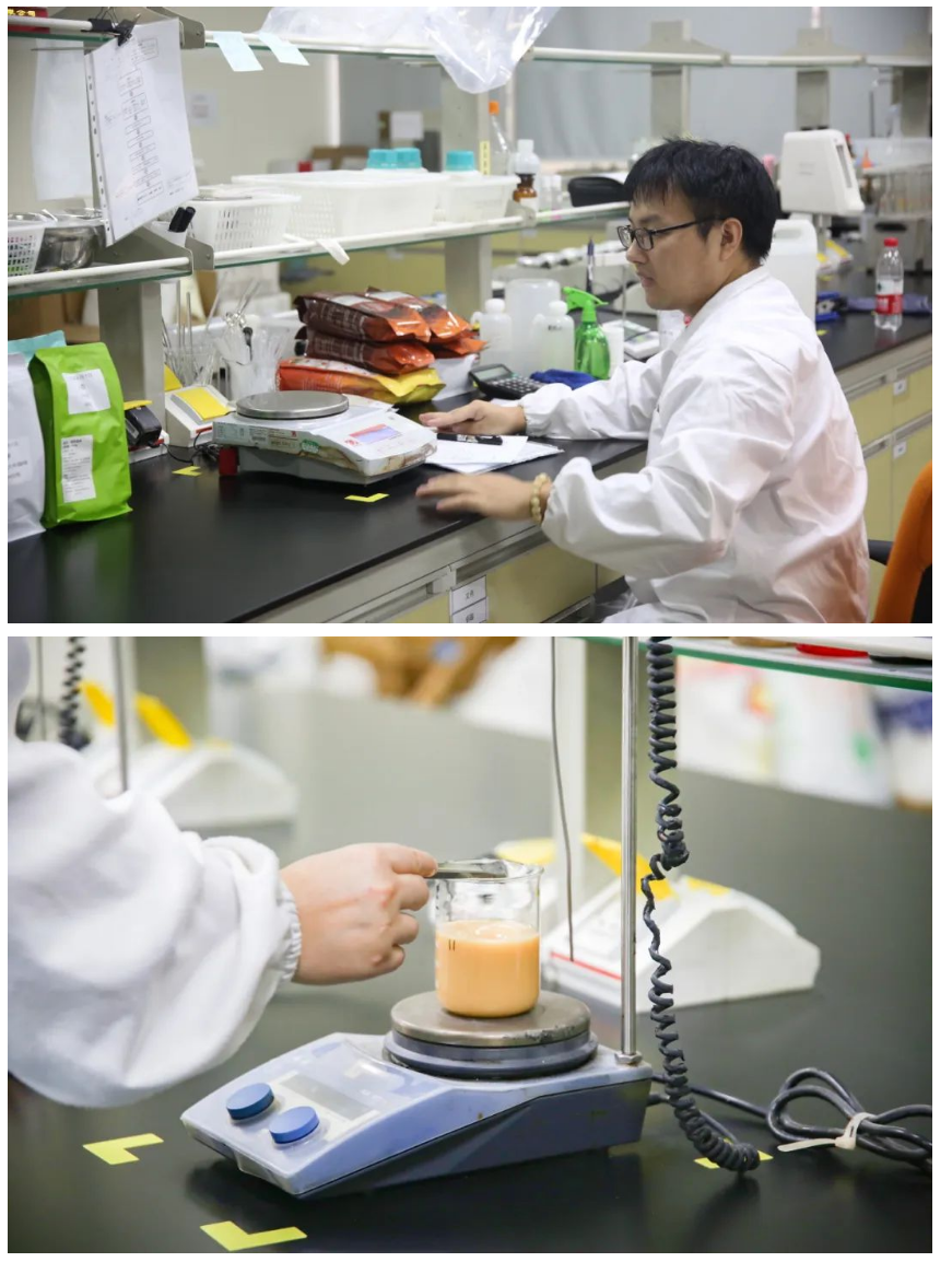 包装好的咖啡还要经过产品检验,三楼是品皇咖啡的研发和检验实验室。这里的瓶瓶罐罐整齐排列,研发人员正忙碌地检验着每一批产品。从原材料到生产过程,再到最终的产品质量,每一步都需要严格把关。