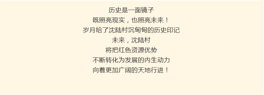 在2019年9月,为了纪念沈陆村的烈士们,沈陆村村委在村十二组建造了约40平方米的忆红居,开展红色系列主题教育,开馆至今已接待一万多人次。