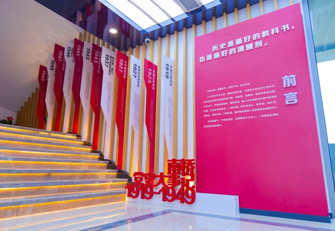 台阶旁,书页般的造型墙上,记录着1919-1949年间南桥党史上的重要事件。