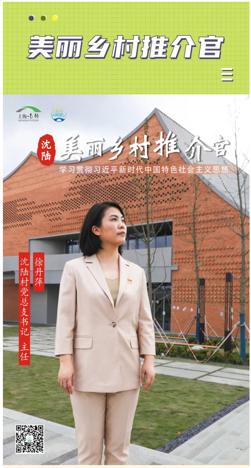为深入学习贯彻习近平新时代中国特色社会主义思想,推动南桥镇主题教育走深走实,“美丽南桥”特推出“美丽乡村推介官”为主题的全域乡村振兴特色专题。南桥镇的村书记们将化身美丽乡村“推介官”,市民朋友们可以通过镜头跟随村书记的讲解和指引,深入了解南桥镇各村精彩纷呈的人文风貌和乡村振兴成果。今天让我们跟随沈陆村党总支书记徐丹萍,一起走进全国红色美丽村庄——沈陆村!