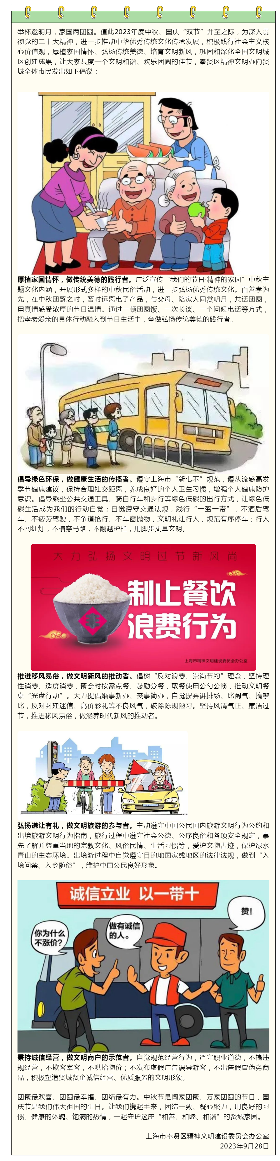 “我们的节日 精神的家园”奉贤市民文明过节倡议书