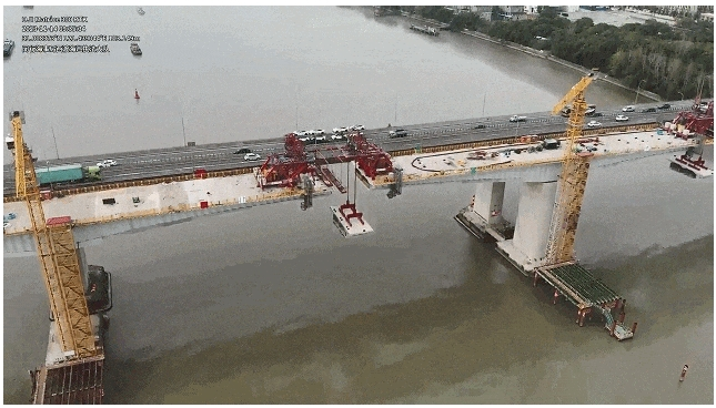 11月中旬,奉浦东桥顺利迎来了最后一次主梁悬臂“T型”吊装作业。闵行海事局现场管控人员提前出动,驾驶“青年先锋”执法巡逻艇到达管控现场,配合电子巡航、海事无人机巡航的“三维一体”巡航管控模式,全力保障奉浦东桥施工水上安全。11月14日,随着最后一节钢桁梁吊装到位,奉浦东桥顺利完成所有钢桁梁结构安装,即将完成主体合龙。