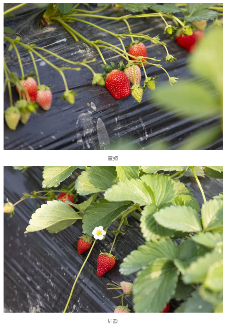 基地草莓品种以章姬及红颜为主,章姬也就是俗称的“奶油草莓”,自带一股香香的牛奶味,而红颜的形状更接近心形,颜值更高、个头更饱满,能到达13.2的糖度,深受市场欢迎。