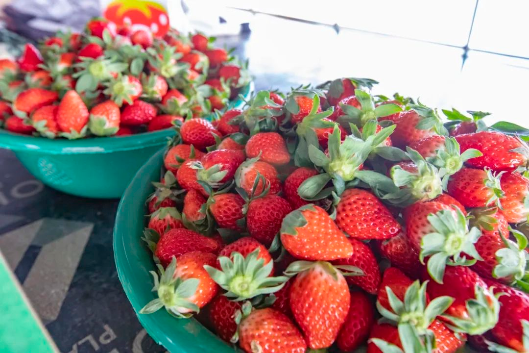 得益于今年光照好、温度高,所以草莓普遍提前上市,产量相对往年不仅更高,品相、口感也都更好。虽然是“头茬”,但是颗粒饱满,味道也十分可口,整颗新鲜的大草莓塞进嘴里,一口咬下去,口腔瞬间被香甜的气息包裹住。