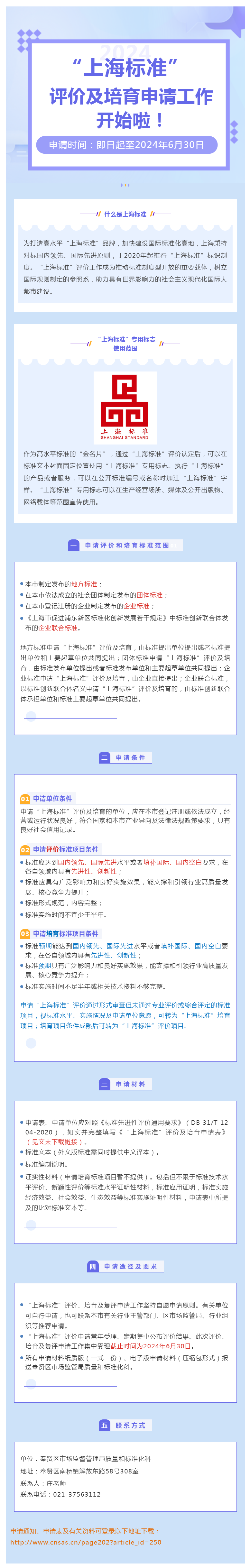 2024年度“上海标准”评价及培育申请工作开始啦!