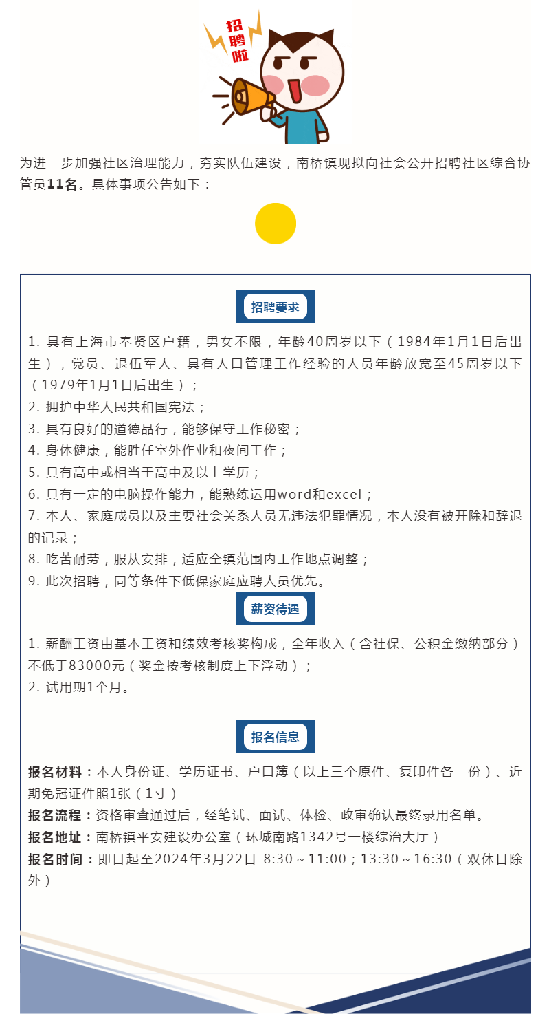 南桥镇向社会公开招聘社区综合协管员11名