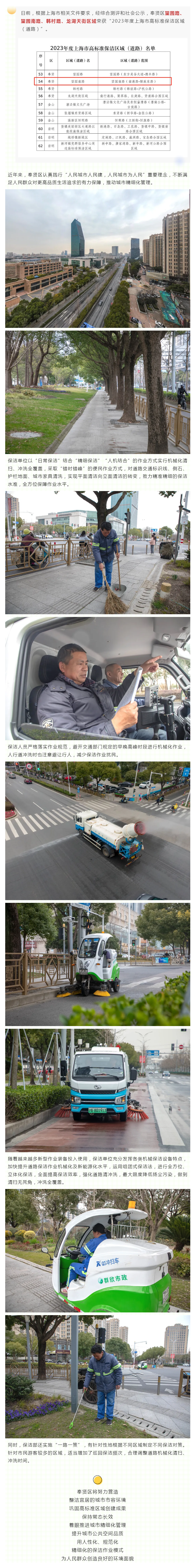 上榜啦!2023年上海市高标准保洁区域(道路)名单公布,奉贤这几处获评→