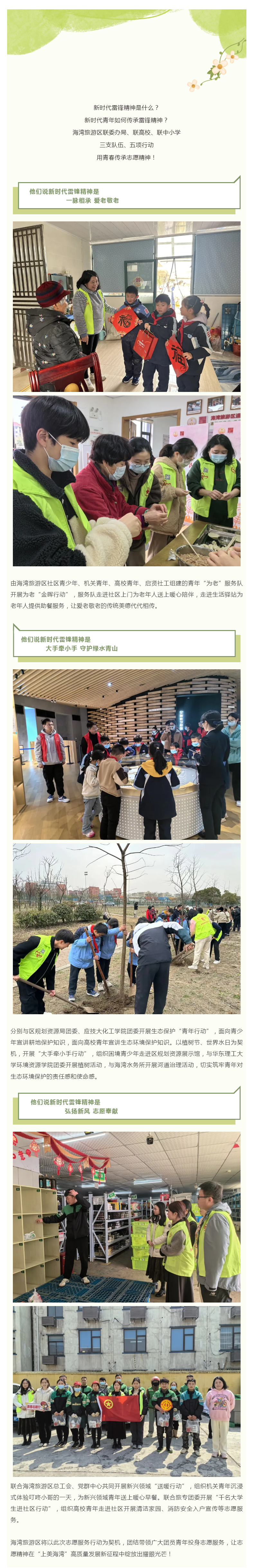 Young春三月,三支队伍,五项行动,海湾旅游区青年用青春传承志愿精神→