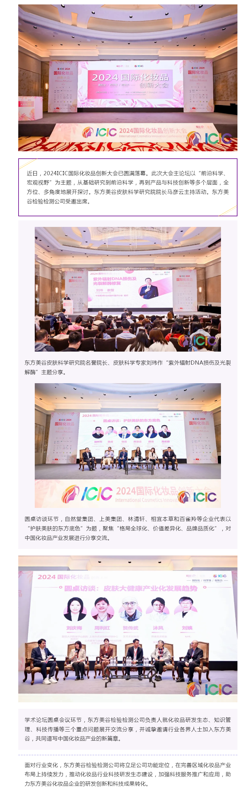 先锋理念,前沿趋势!东方美谷检验检测公司受邀出席2024ICIC国际化妆品创新大会