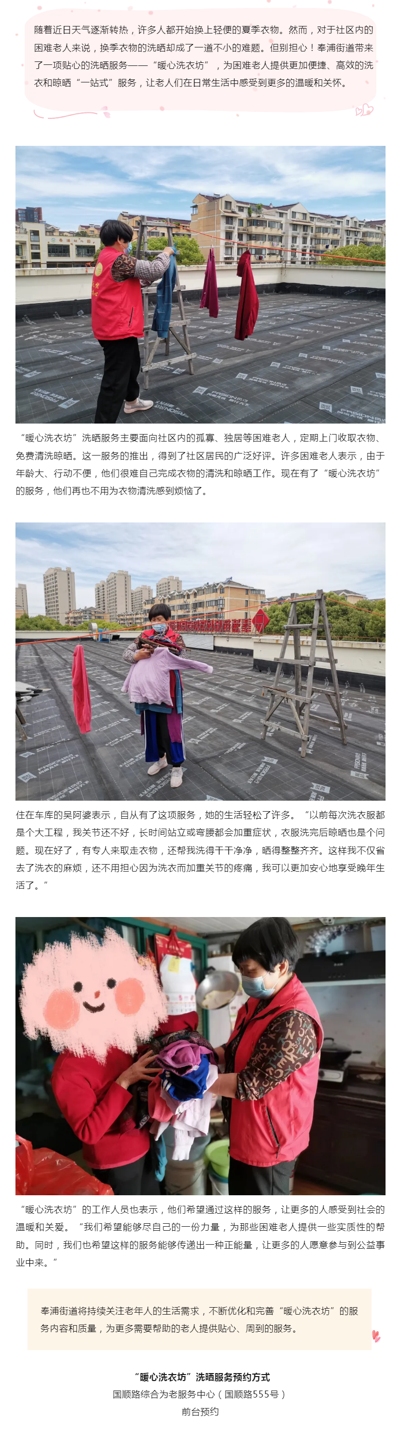 奉浦街道全新推出“暖心洗衣坊”,洗晒服务温暖上线!