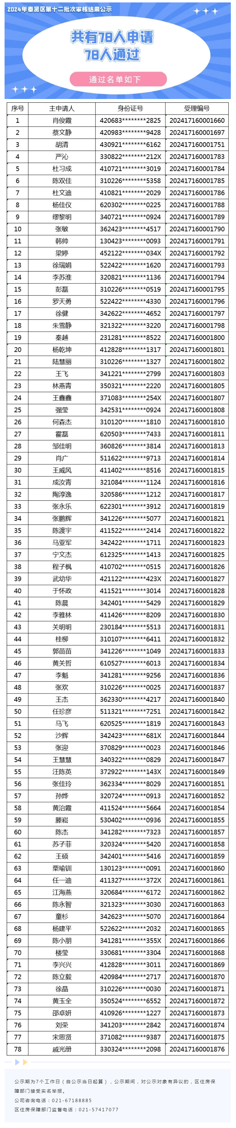 公租房准入资格审核通过名单公示(2024年6月12日)