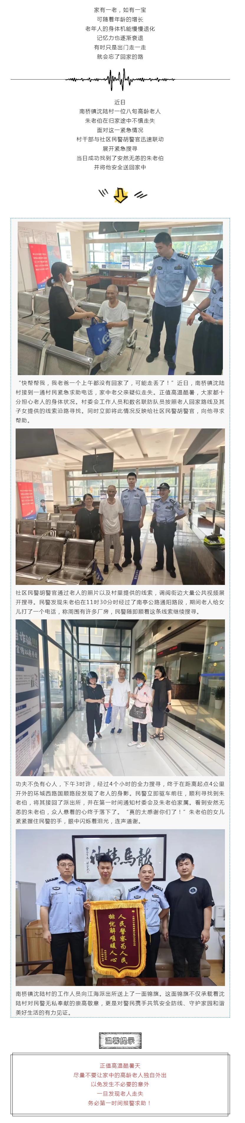 南桥一八旬老人走失, 村干部与社区民警迅速联动将其寻回→
