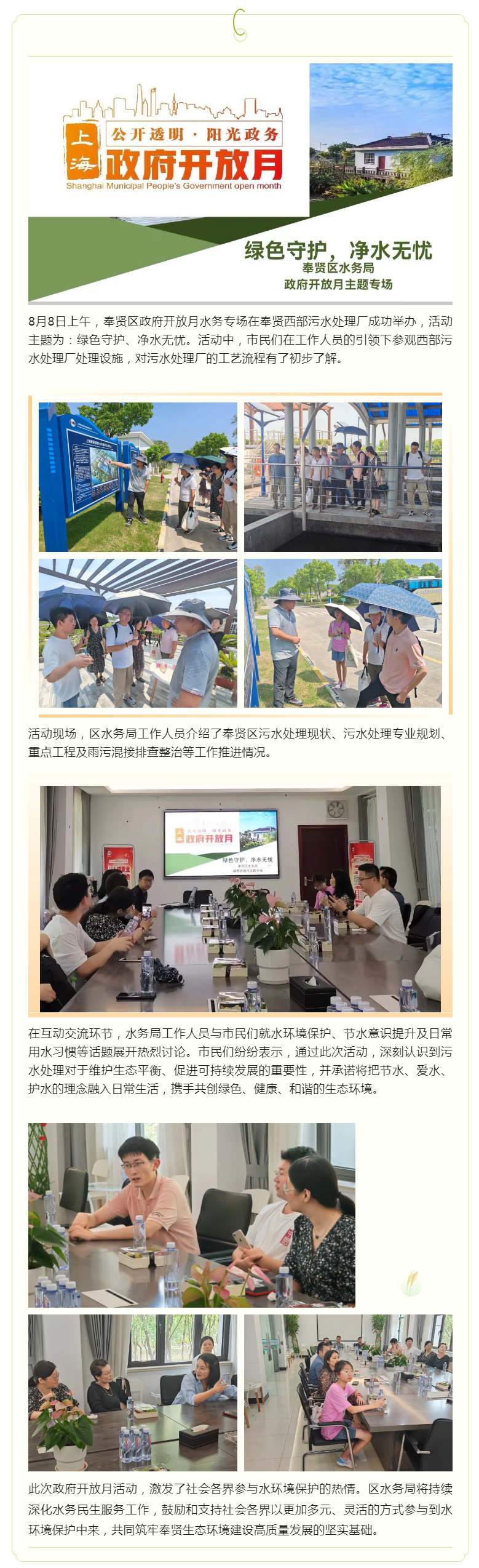 政府开放月|“绿色守护 净水无忧”区水务局邀请市民走进西部污水处理厂