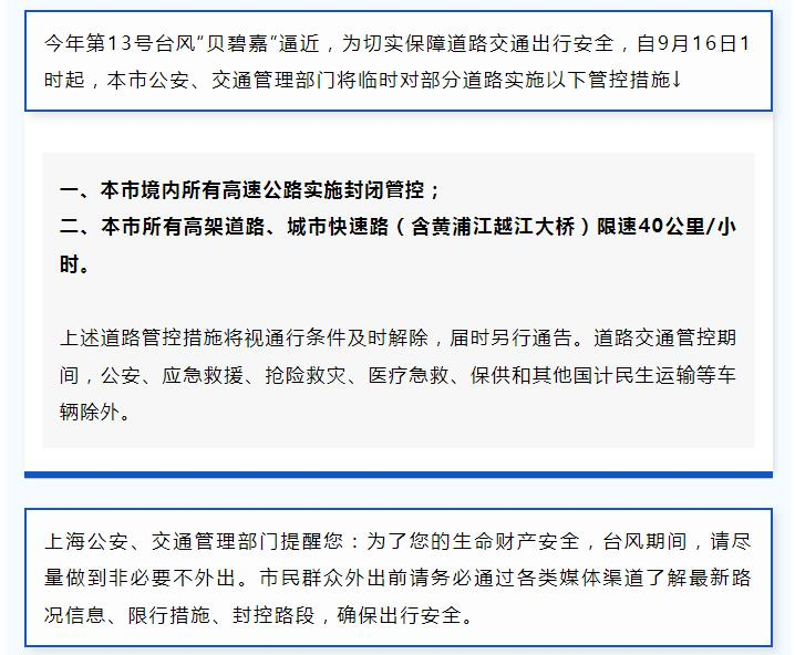 9月16日1时起,本市境内所有高速公路实施封闭管控