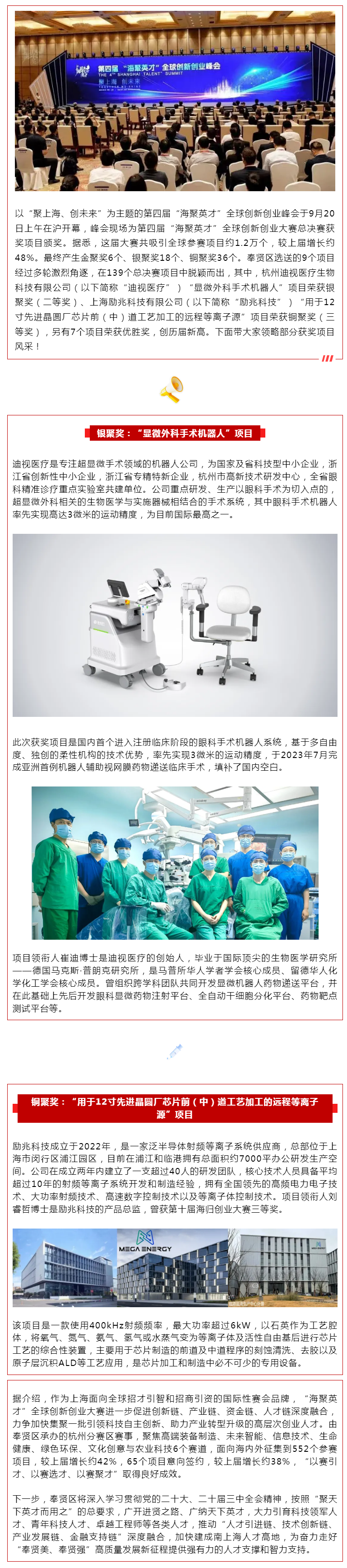 喜报!奉贤区选送的人才项目荣获第四届“海聚英才”全球创新创业大赛总决赛奖项