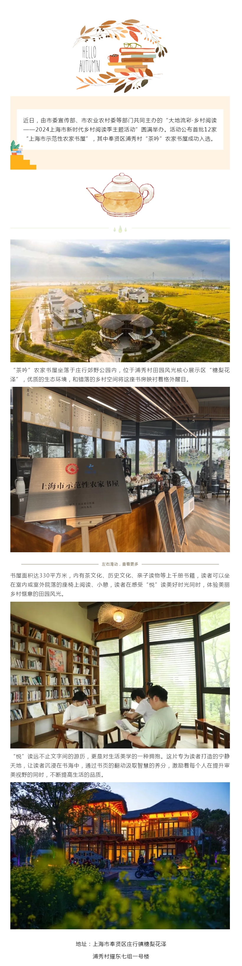 首批上海市示范性农家书屋公布!奉贤浦秀村“茶吟”书屋评上了