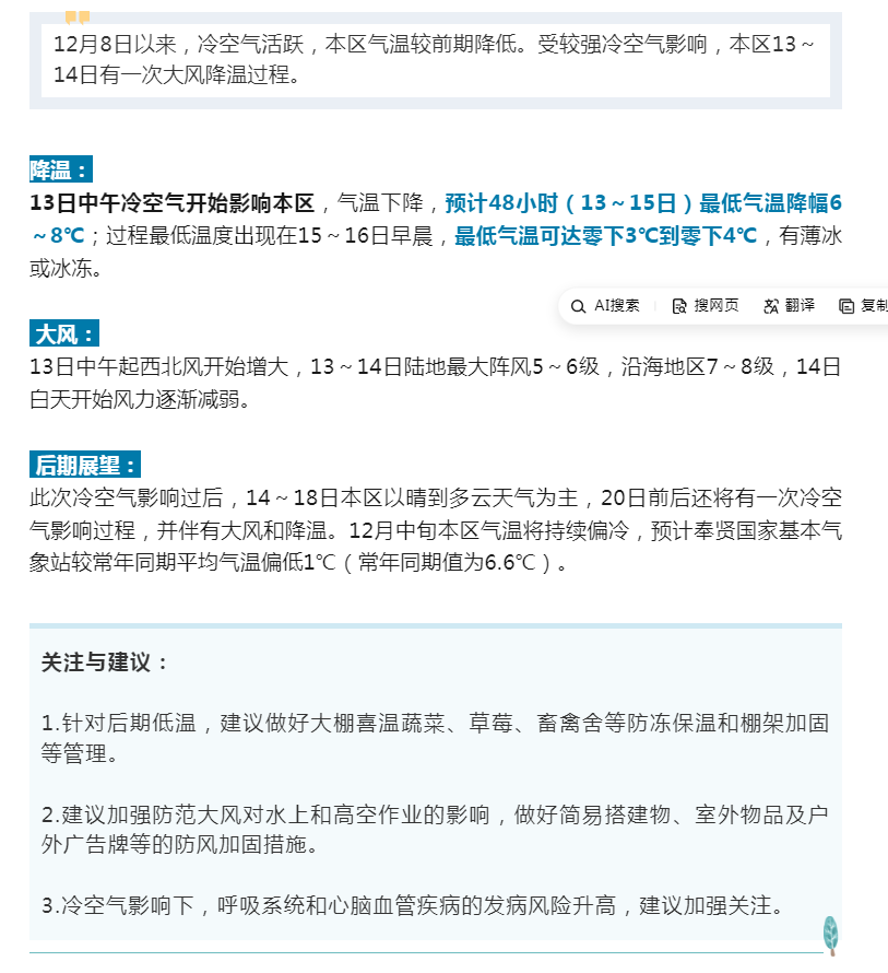 明天起冷空气要“冻”真格了,奉贤周日最低气温零下4℃