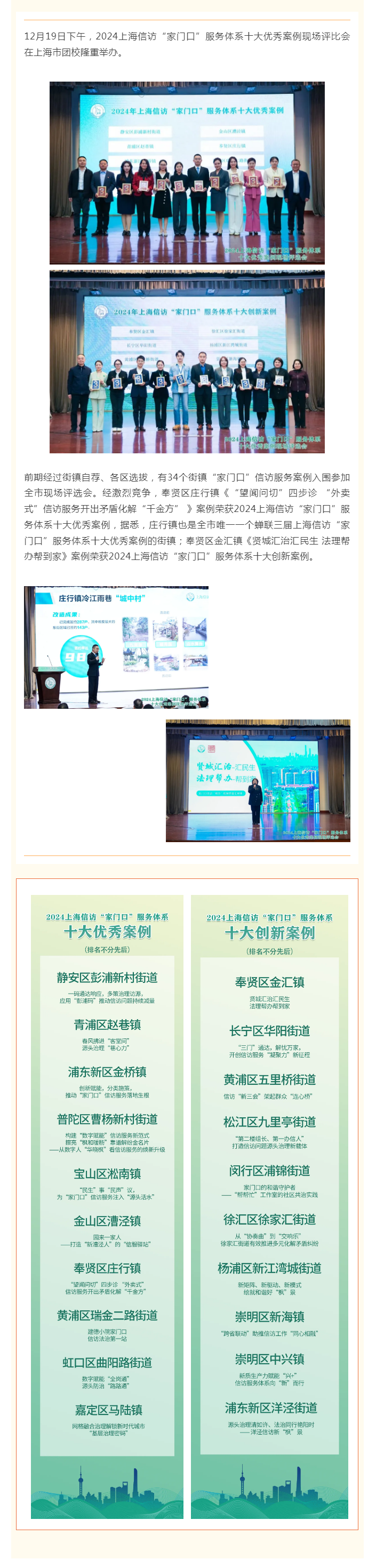 奉贤这两个镇分别荣获2024上海信访“家门口”服务体系十大优秀案例、十大创新案例