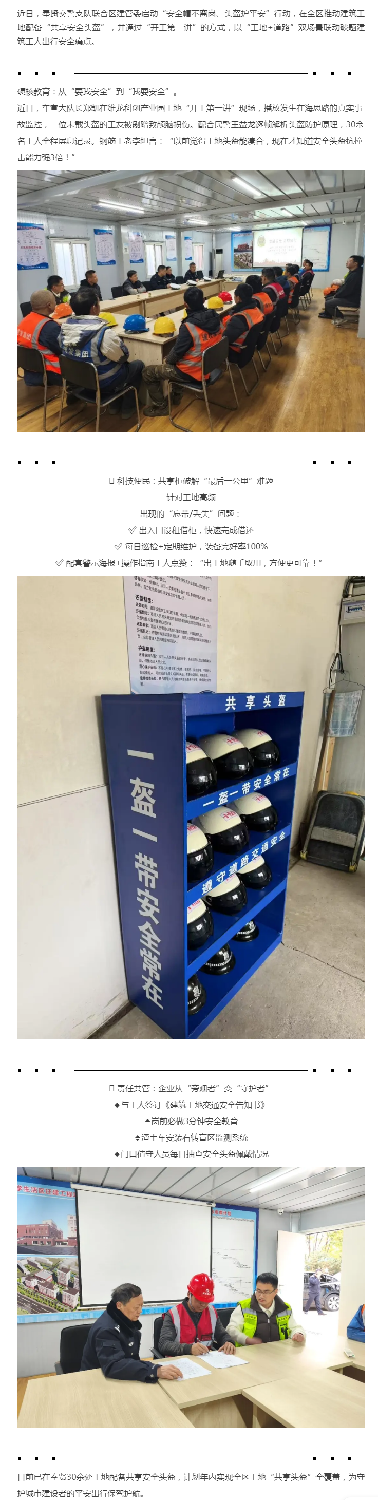 奉贤警企创新“共享安全头盔”模式!守护城市建设者平安→