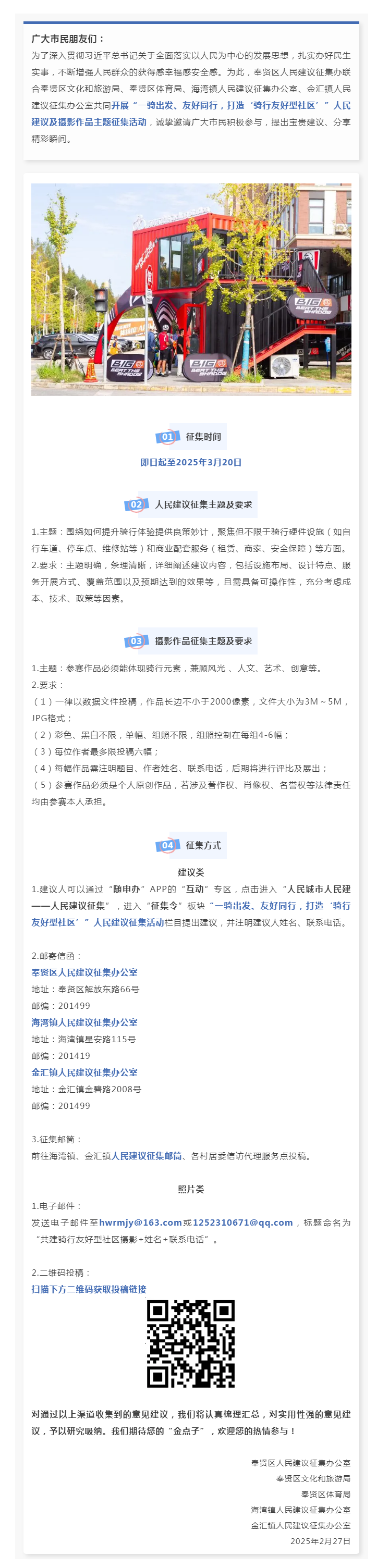 一骑出发、友好同行,打造“骑行友好型社区” 征集令启动!