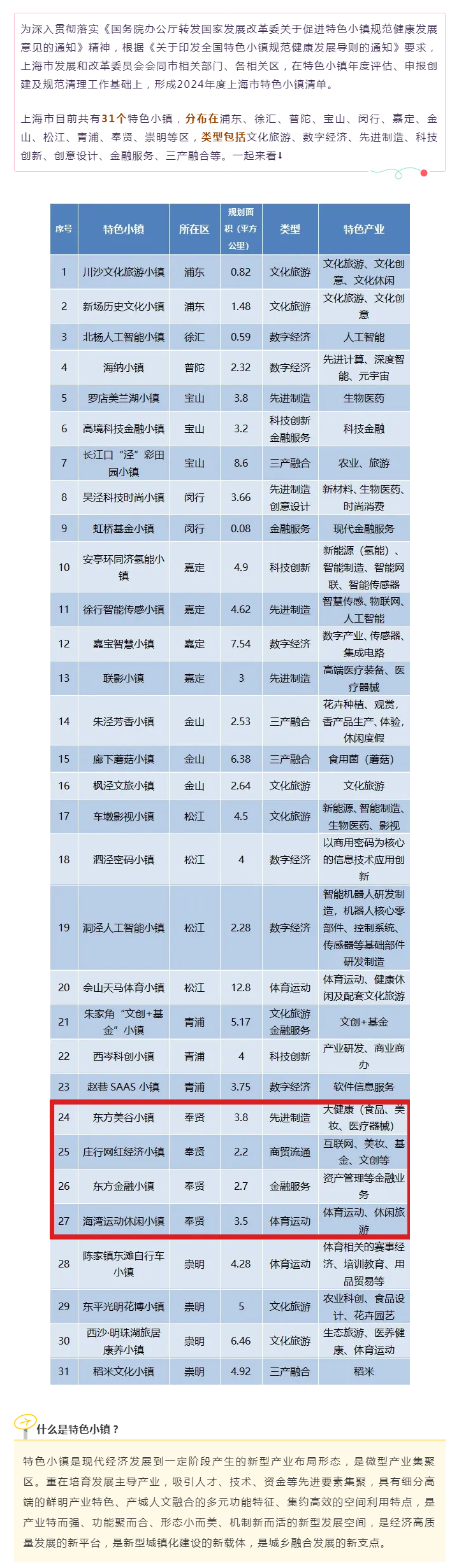 2024年上海市特色小镇清单发布!奉贤有这4个特色小镇→