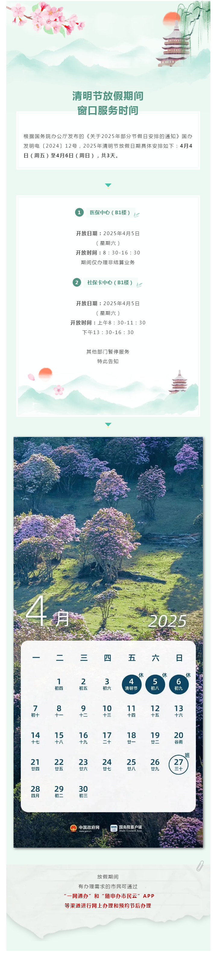 奉贤区政务服务中心清明放假期间窗口服务时间,点击查看→