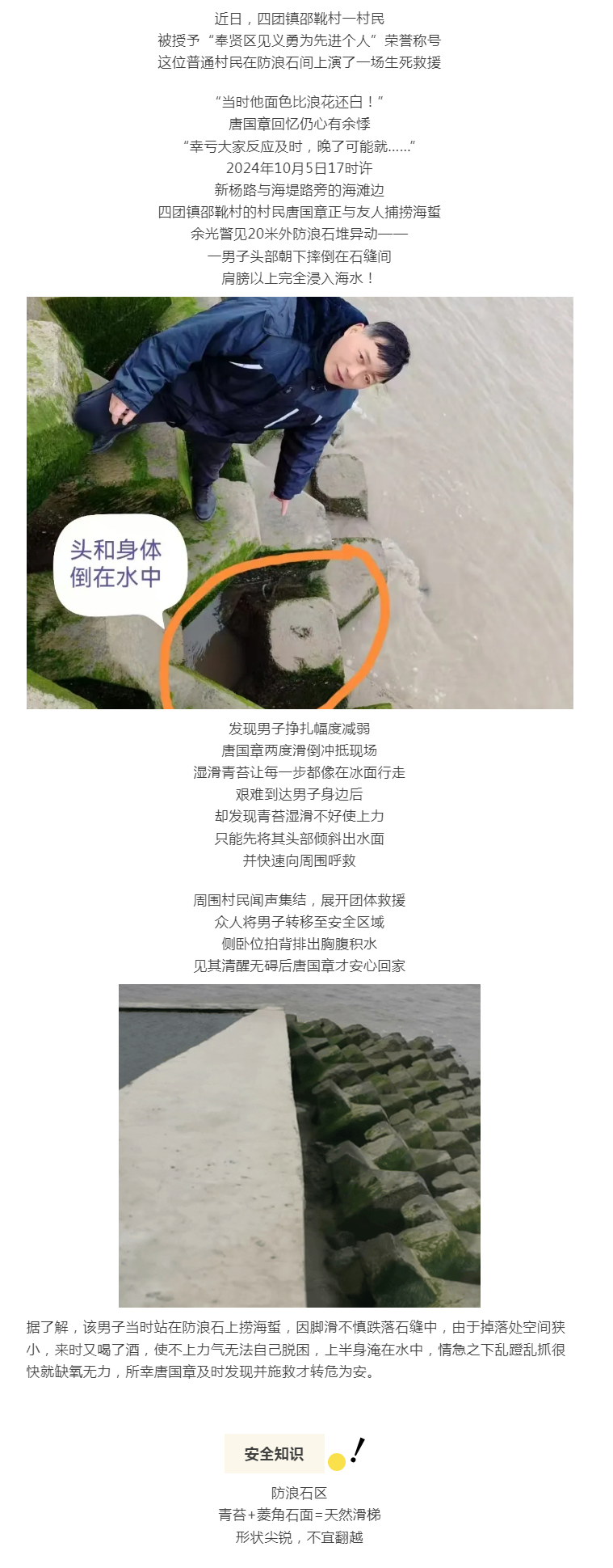 60岁男子深陷石缝命悬一线之际,四团镇一村民冲入险境……