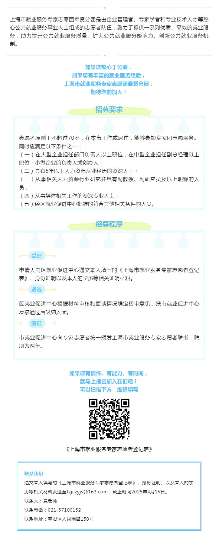 2025年上海市就业服务专家志愿团奉贤分团诚邀您加入!