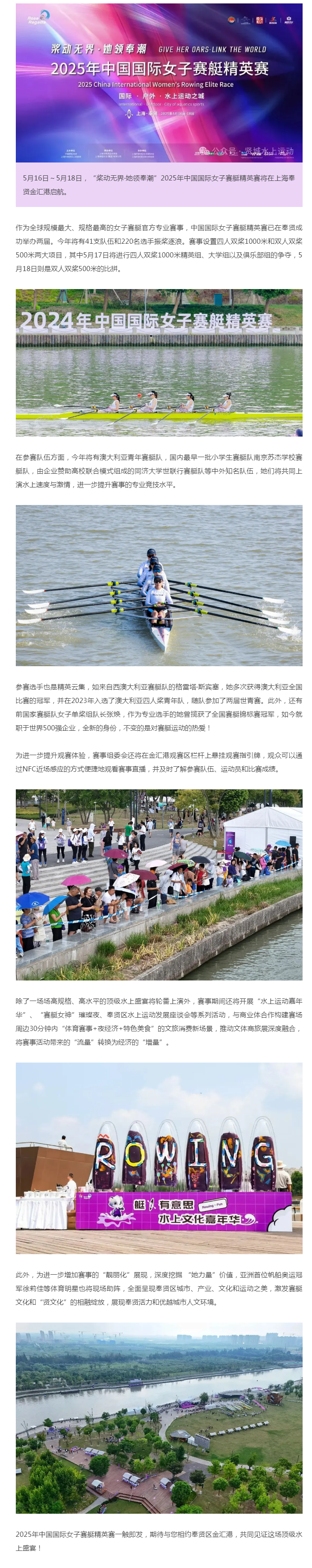 “粉色浪潮”来袭!2025年中国国际女子赛艇精英赛一触即发