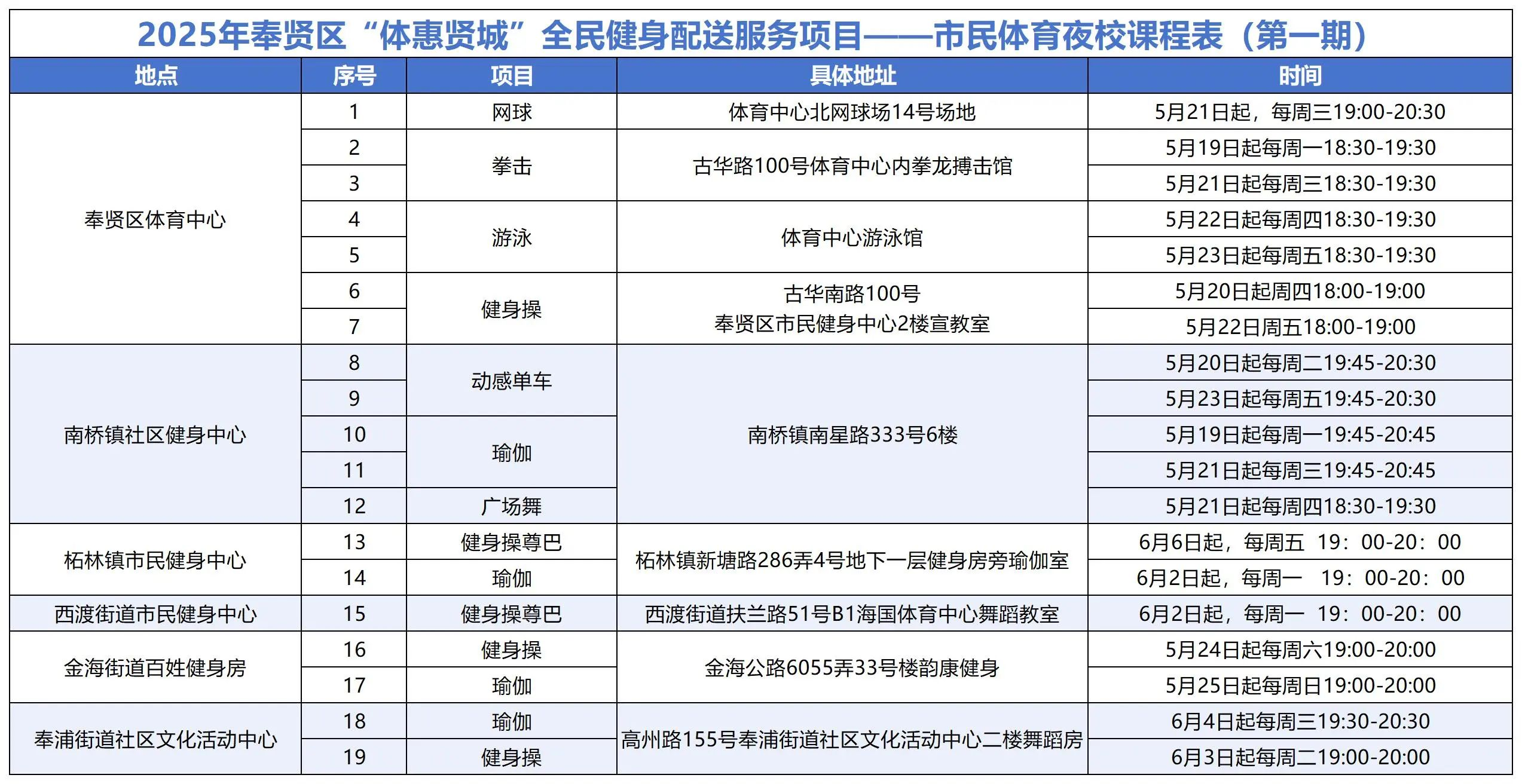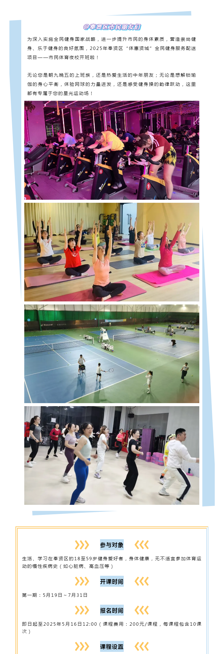 越夜越活力,都市能量场!奉贤区市民体育夜校开始报名啦!
