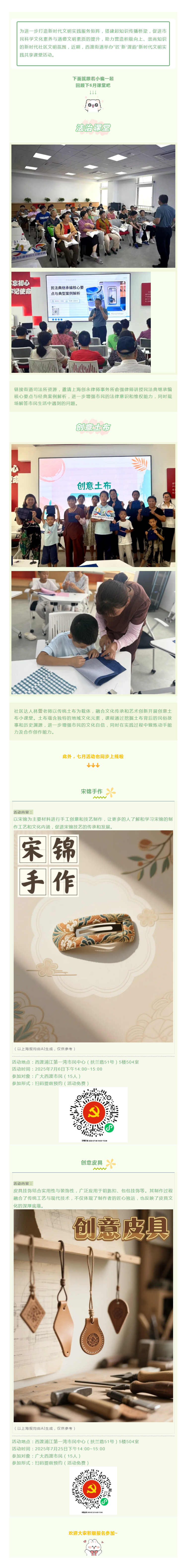 西渡街道“匠‘新’渡韵”新时代文明实践共享课堂精彩回顾,内附7月活动预告别错过→