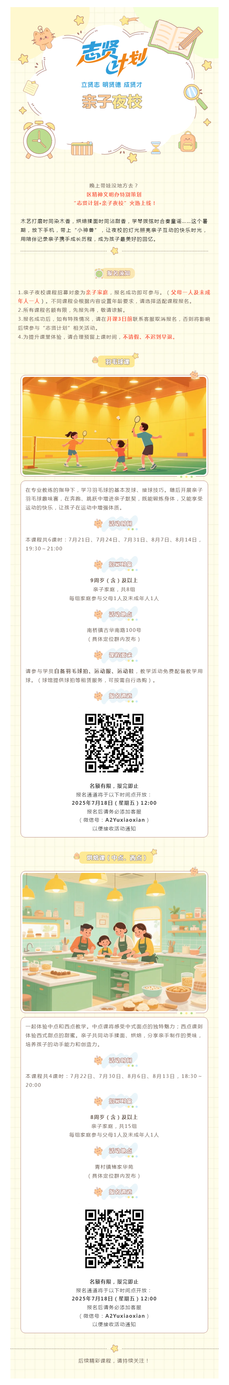 “志贤计划”暑期季第四弹,亲子夜校开学啦!丰富课程总有一款适合你!