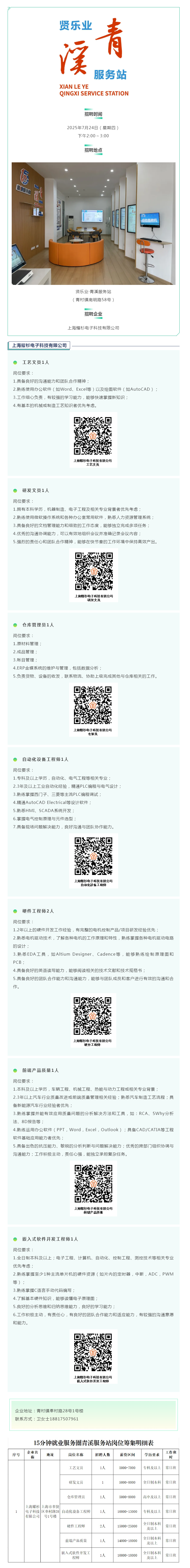 最高月薪25000,青村镇贤乐业·青溪服务站,“职”等你来!