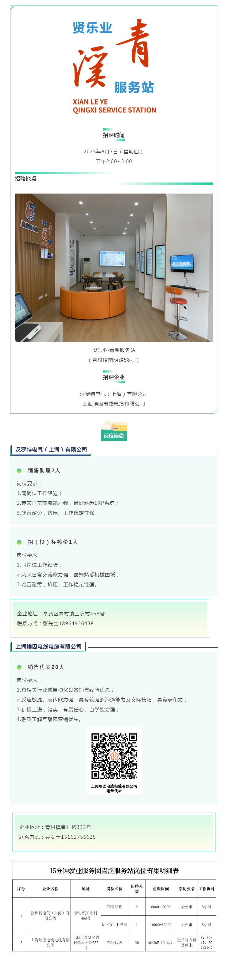 最高年薪20万!本周四,青村镇贤乐业·青溪服务站“职”等你来!
