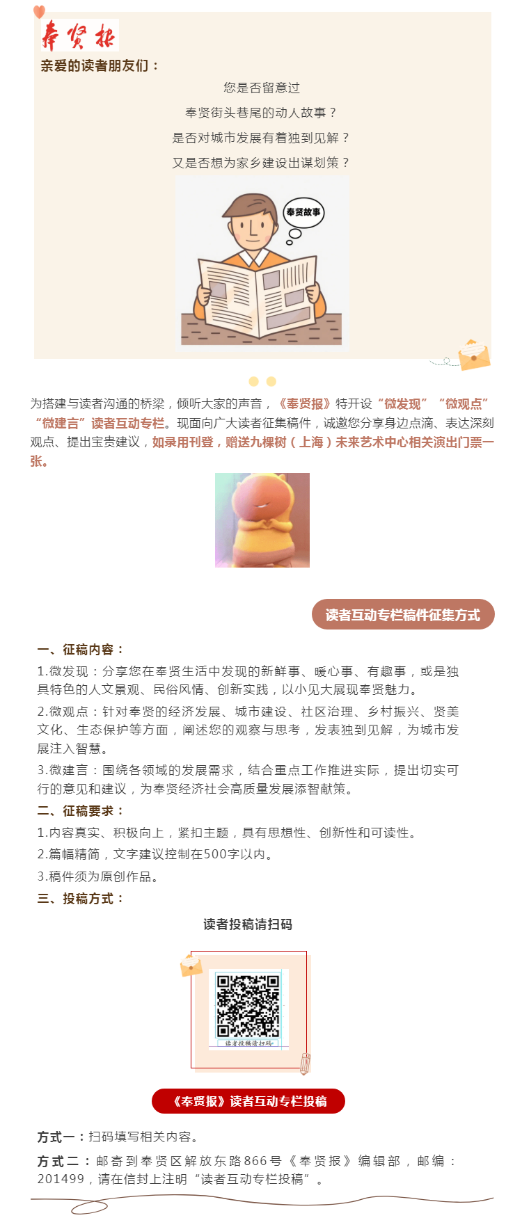 有奖征集!《奉贤报》开启读者互动专栏,倾听您的声音,期待您的分享