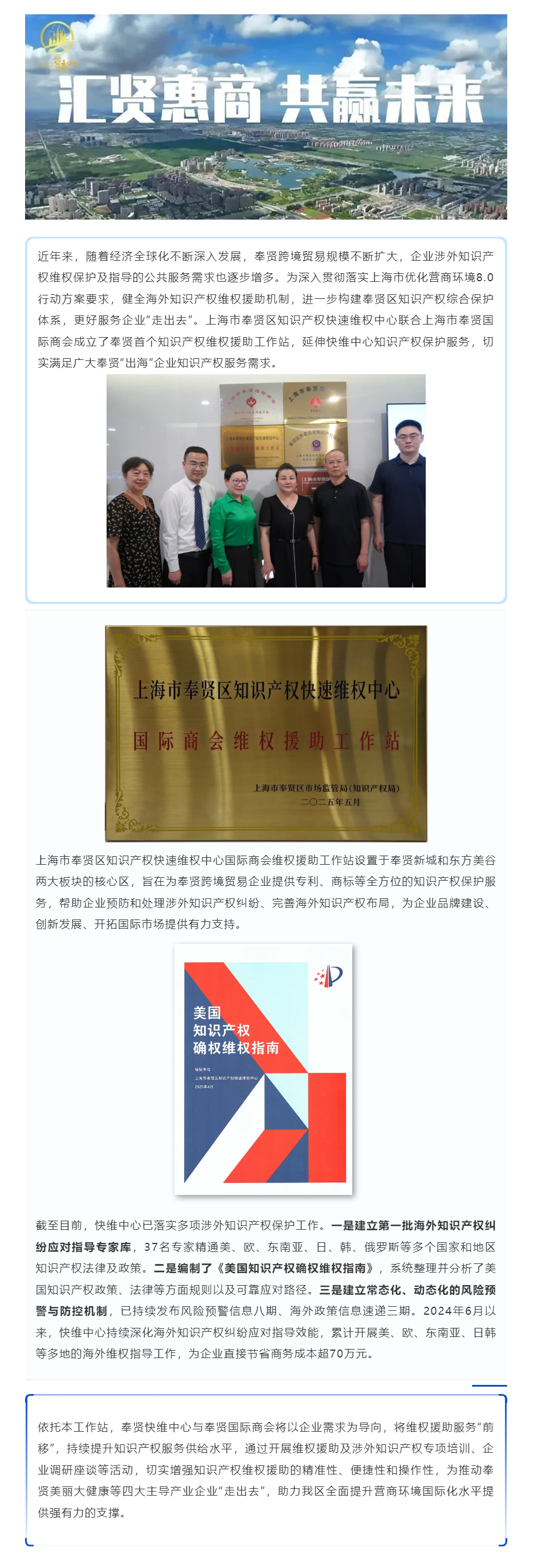 奉贤区成立首个知识产权维权援助工作站!护航企业跨境发展丨营商环境 “优”无止境