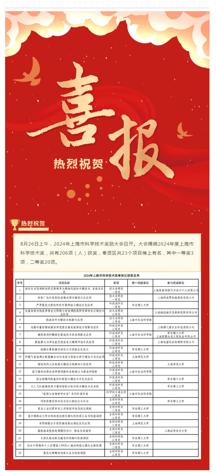 喜报!奉贤区获得23项2024年度上海市科学技术奖