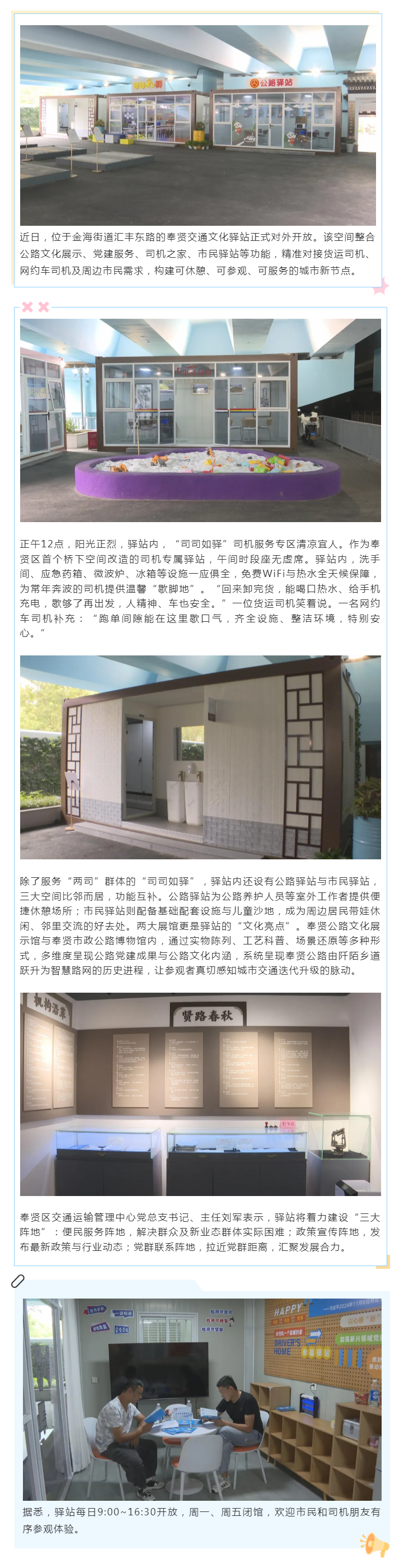 奉贤交通文化驿站启用!打造“两司”群体与市民共享的暖心空间