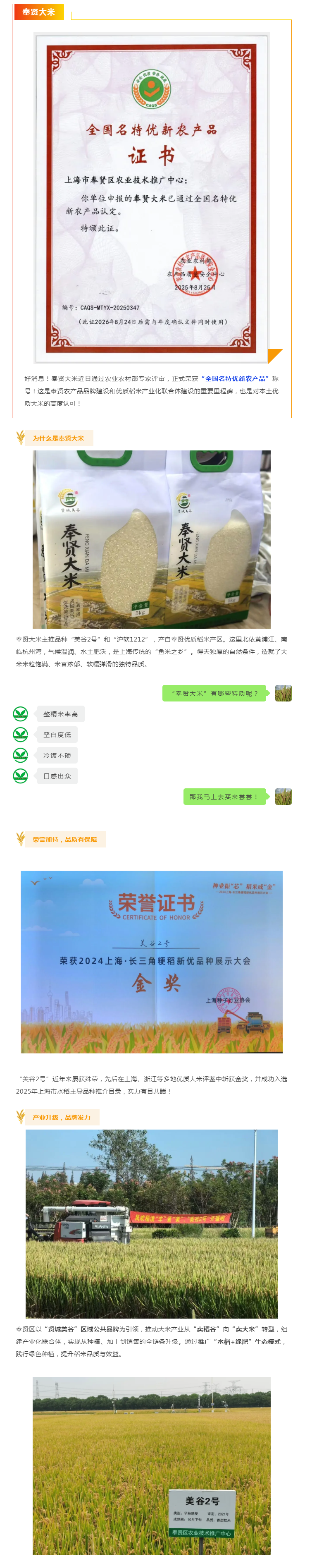 奉贤大米!全国名特优新农产品,凭实力“出稻”→