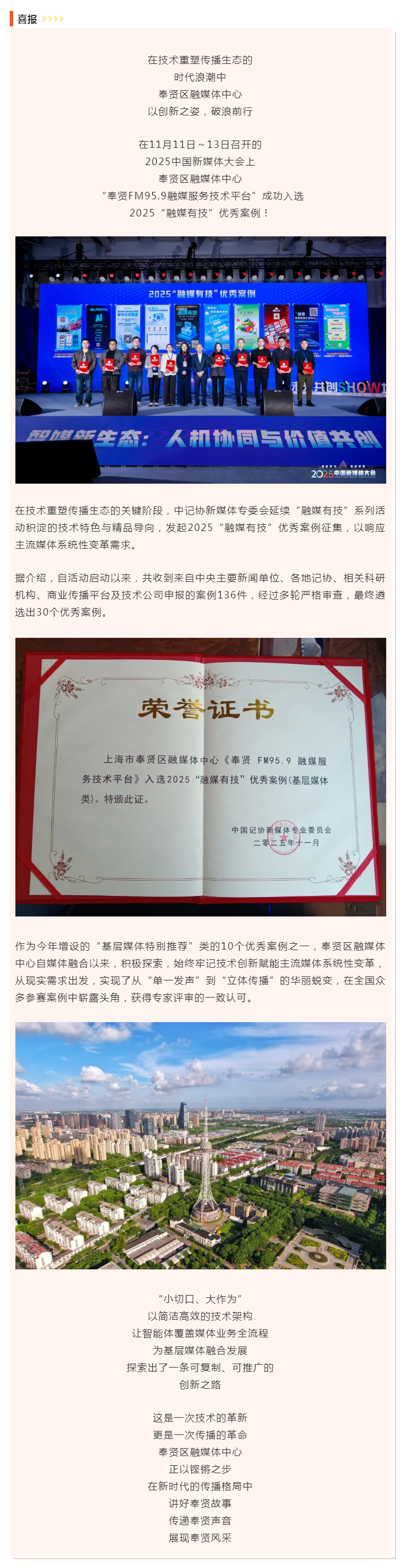 全国仅十!技术赋能,奉贤融媒斩获全国殊荣!