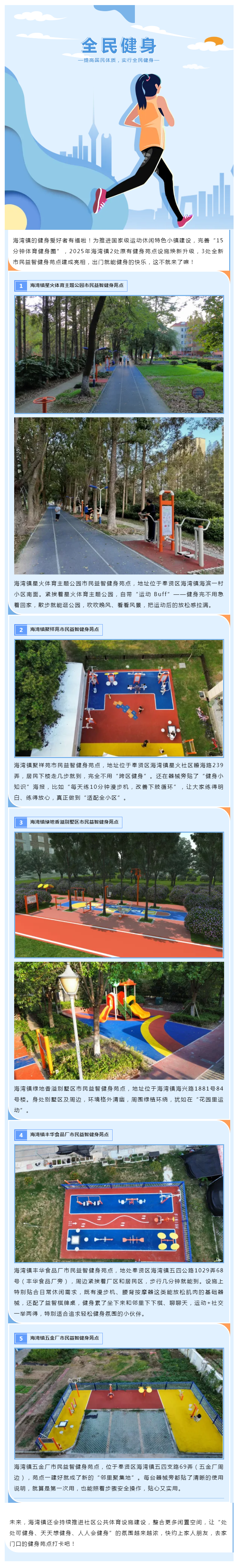 速来打卡!海湾镇5处健身苑点升级上新,15分钟健身圈再扩容