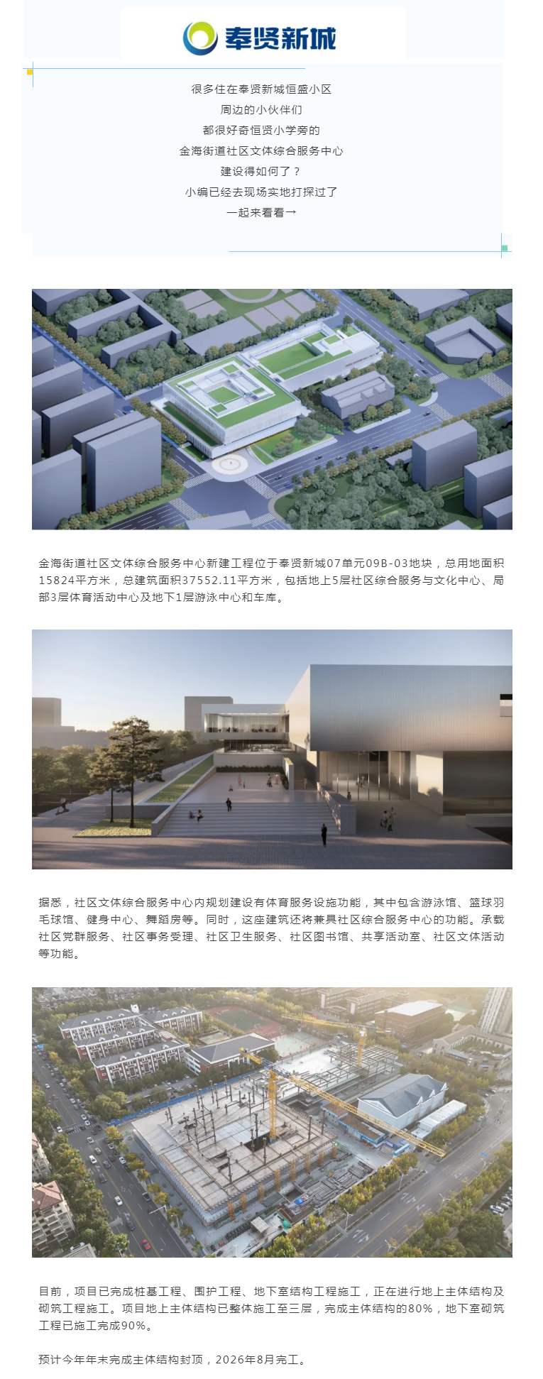 奉贤新城这个新建社区文体综合服务中心建设得如何了?一起来看看→
